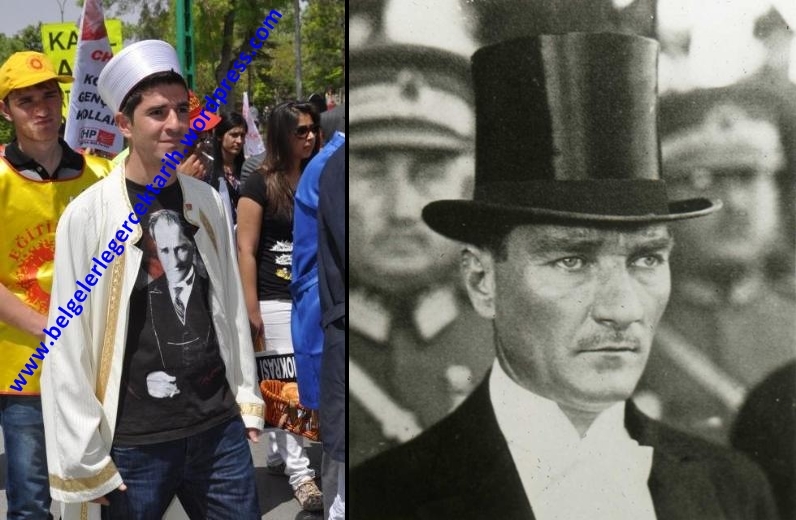 Arkadaşım, M. Kemal Islam’ın sembolü olan sarık’ı atmış ve yahudi dininin sembolü olan şapkayı getirmiştir. Dolayısıyla sarık ile M. Kemal birbirine zıttır. Iki zıd şey ise bir arada bulunamaz.