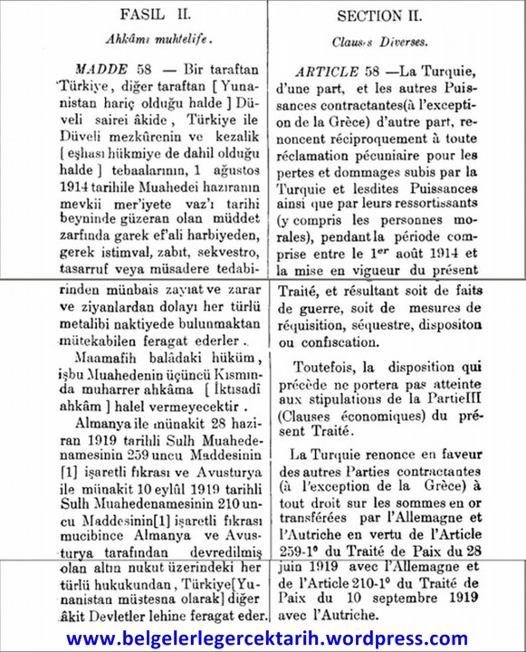 Lozan Andlaşmasının 58. maddesi tam bir rezalet