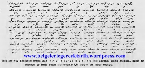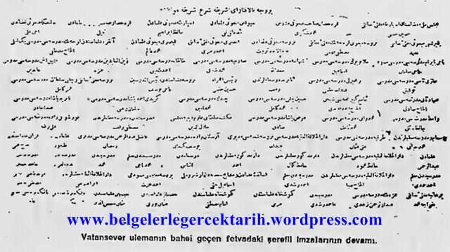 Kurtuluş Savaşı’nın temeli olan Fetevâ-yı Şerife’nin altındaki alimlerin imzaları