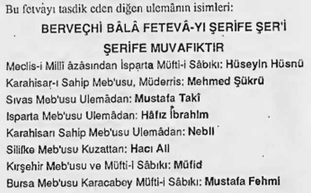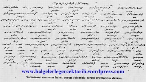 Fetevâ-yı Şerife’yi imzalayan ve tasdik eden alimler: