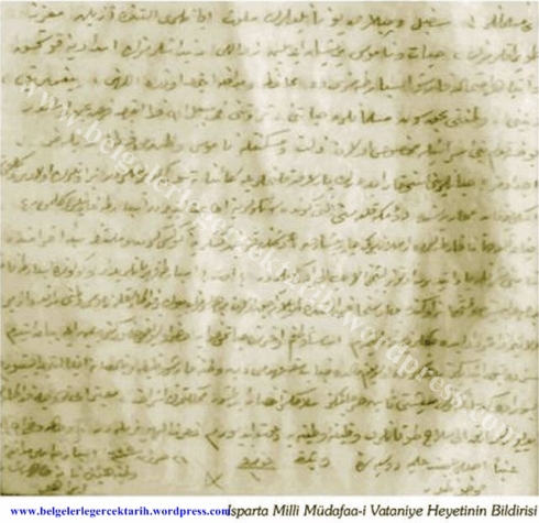 Isparta Milli Müdafaa-i Vataniye Heyetinin Bildirisi