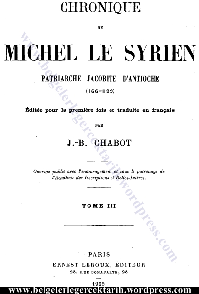 [2] J.-B. Chabot, Chronique De Michel Le Syrien – Patriarche Jacobite D’antioche, Paris 1905, cild 3, sayfa 152.