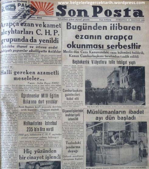 Diyanet İşleri Başkanlığı’nın, 18 Temmuz 1932 tarih ve 636 sayılı genelgesiyle ezan ve kametin Türkçe okunacağını bildiren kararının ardından, tam 18 yıl boyunca Türkçe okunan ezanın ilk defa Arapça okunduğu gün Edirne’den Artvin’e, Sinop’tan İskenderun’a kadar tüm Türkiye’yi gözyaşlarına boğan günün hikâyesine bir göz atalım.