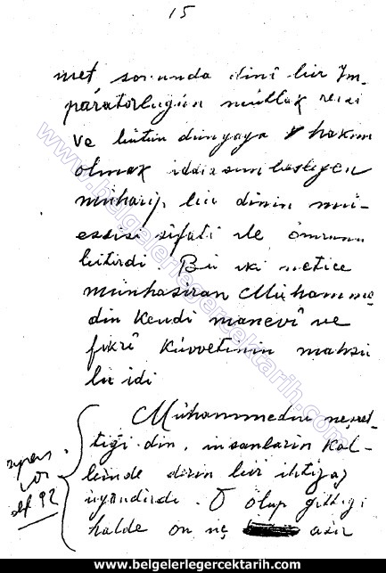 M. Kemal’in, “Lise Tarih” kitabı için 1930 yılında eliyle yazdığı birçok sayfanın arşivlerde bulunduğu erbabına malumdur. Işte bu kitap için kaleme aldığı yazılar arasında Hz. Muhammed (sallallahu aleyhi ve sellem) Efendimiz ve Islamiyetin doğuşu hakkında şöyle demektedir: