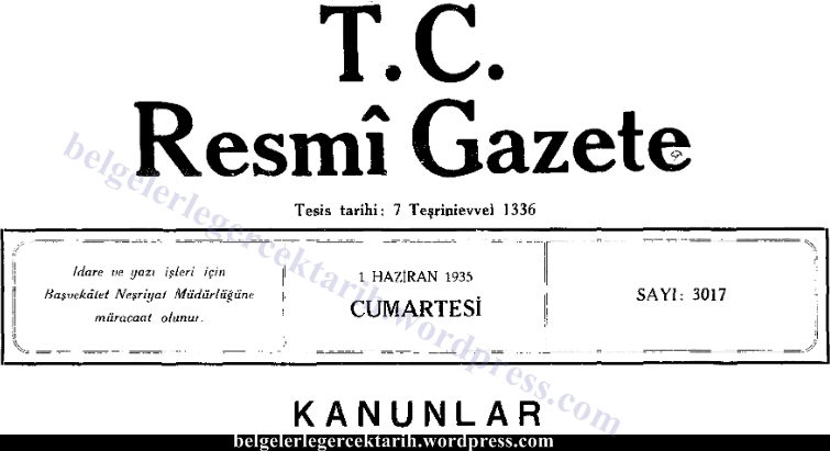 [8] TBMM Zabıt Ceridesi, Devre 5, cild 3, inikad 31, 27 Mayıs 1935 (Meclis tutanağı).