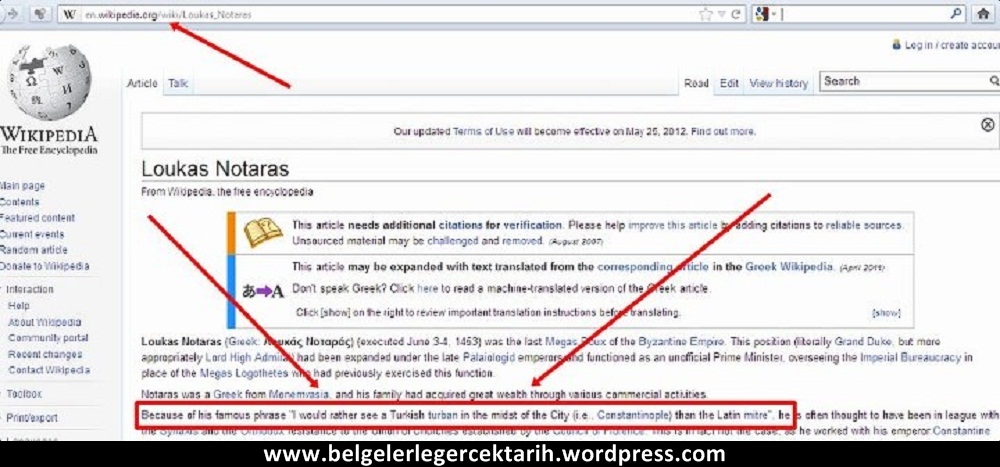 Notaras’ın o meşhur sözünün geçtiği Wikipedia sayfası