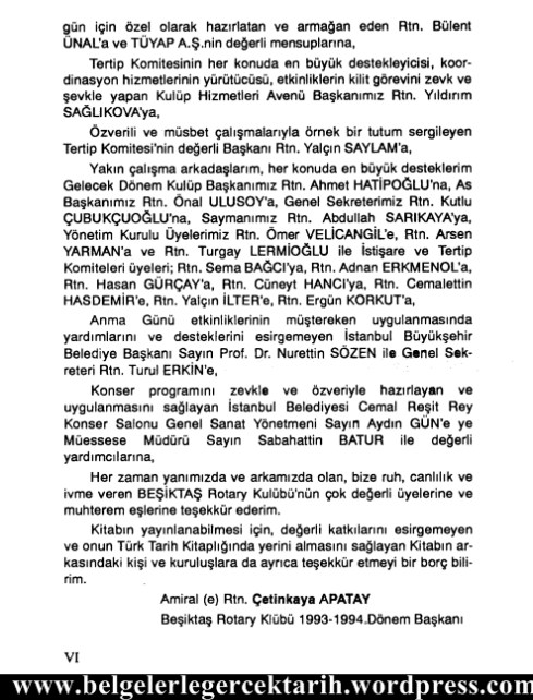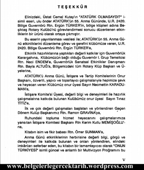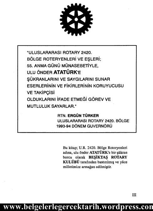 “Atatürk olmasaydı” isimli kitabın “Beşiktaş Rotary Kulübü” tarafından bastırıldığına dair kitapta verilen bilgi