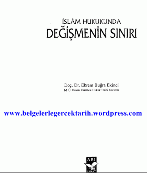 Prof. Dr. Ekrem Buğra Ekinci, İslâm Hukukunda Değişmenin Sınırı, Arı Sanat Yayınevi, Istanbul 2005, 152 sayfa.