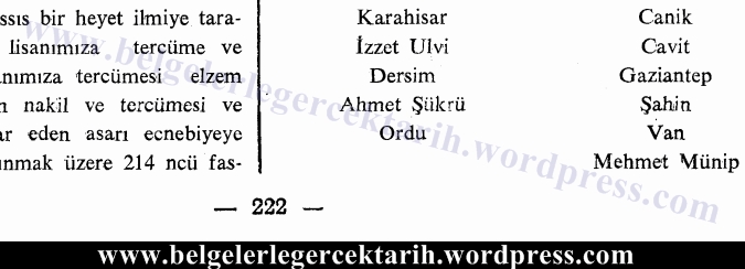 [10] TBMM Zabıt Ceridesi, Devre 2, Içtima Senesi 2, Içtima 61, cild 14, sayfa 222, 223. 21.02.1341 Cumartesi.