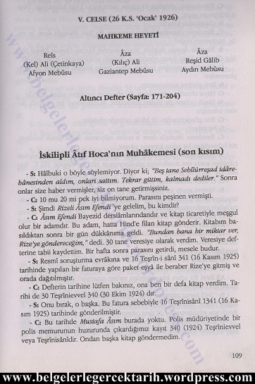 [16] Ergün Aybars, Istiklal Mahkemeleri, (cild 1-2), Ileri Kitabevi, Izmir 1995, sayfa 108.