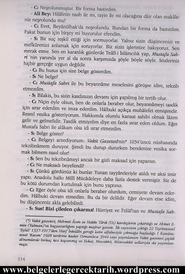 [17] no’lu dipnot ile ilgili… Cemal Kutay’ın naklettiği münakaşanın Meclis tutanağından bir bölüm (KAYNAK: Münakaşanın tamamı için bakınız; TBMM Zabıt Ceridesi, Içtima 56, cild 20, 17.6.1338, sayfa 448 ve devamı.)