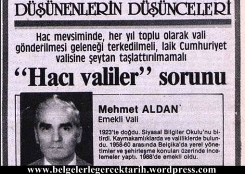 Cumhuriyet’in ilk yıllarında milletin hacca gitmesini engelleyen[1] Laik Kemalist zihniyet, Birleşmiş Milletlerin baskısıyla çok partili hayata geçildikten sonra[2], milletin oy’unu alabilmek için hacca gidilmesine izin vermişti. Fakat zihniyetlerinin değişmediğini Milliyet gazetesinde yayınlanan bu haber göstermektedir. Gördüğünüz gibi, bu haberde valilerin hacca gidilmesi eleştiriliyor ve “Laik Cumhuriyet Valisine Şeytan taşlattırılmamalı“[3] deniyor.
