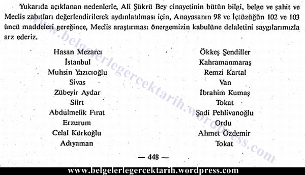 ali sükrü topal osman olayi hasan mezarci genelge meclis tutanagi muhsin yazicioglu imza