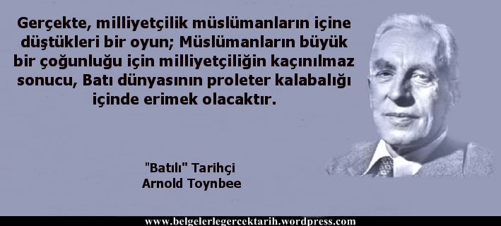 Atatürk inkılaplarının Islâm’a karşı yapıldığını ve bunun batılıların lehine, bizim ise aleyhimize olduğunu söylediğimizde, kemalist cenah bizi “yobaz” ve “fındık beyinli” olmakla suçluyor. Bu yüzden Atatürk devrimleriyle ilgili Arnold Toynbee’nin, yani batılı bir tarihçinin yazdıklarına yer verelim istiyoruz. Işte M. Kemal’in muasır medeniyet seviyesinin üstüne çıkmak için yüzünü çevirdiği batının bir tarihçisinin (yani bizim gibi yobaz değil !) Atatürk devrimleriyle ilgili yazdıkları: