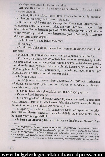 2) O, Ittihat Terakki döneminden bu yana karanlık emeller taşıyan, Ingiliz ve Yunanlılarla işbirliği içerisinde zararlı faaliyetleri olan ve Milli Mücadelenin karşısında bir vatan hainidir.