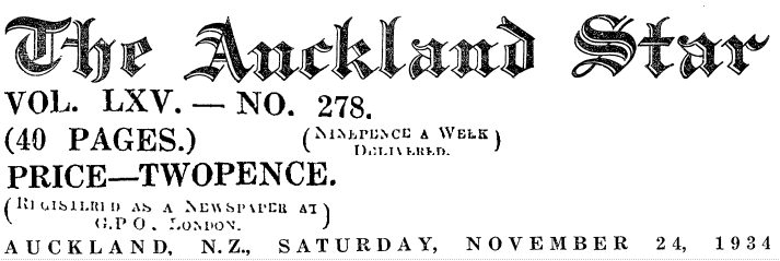 24.11.1934 tarihli The Auckland Star Gazetesi…