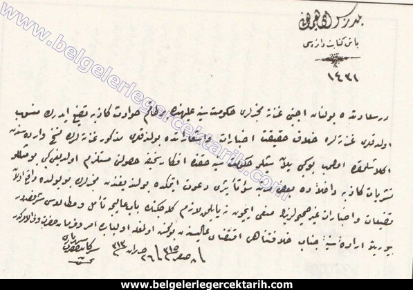 KAYNAK: Başbakanlık Osmanlı Arşivi, Irade Hususi, 15, 9 S 1317.