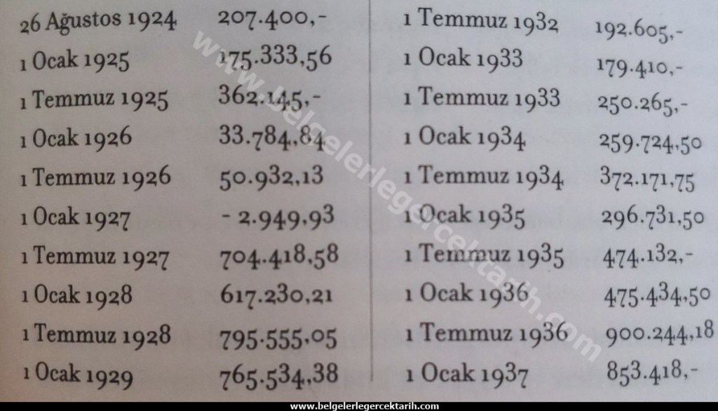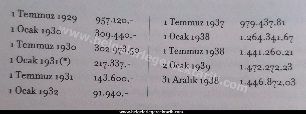 Söz konusu “4 mükerrer numaralı hesab”ın 27 Temmuz 1925 ile 28 Şubat 1939 tarihleri arasındaki altışar aylık dökümü ise aşağıdaki gibiydi[6]:
