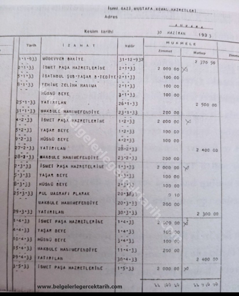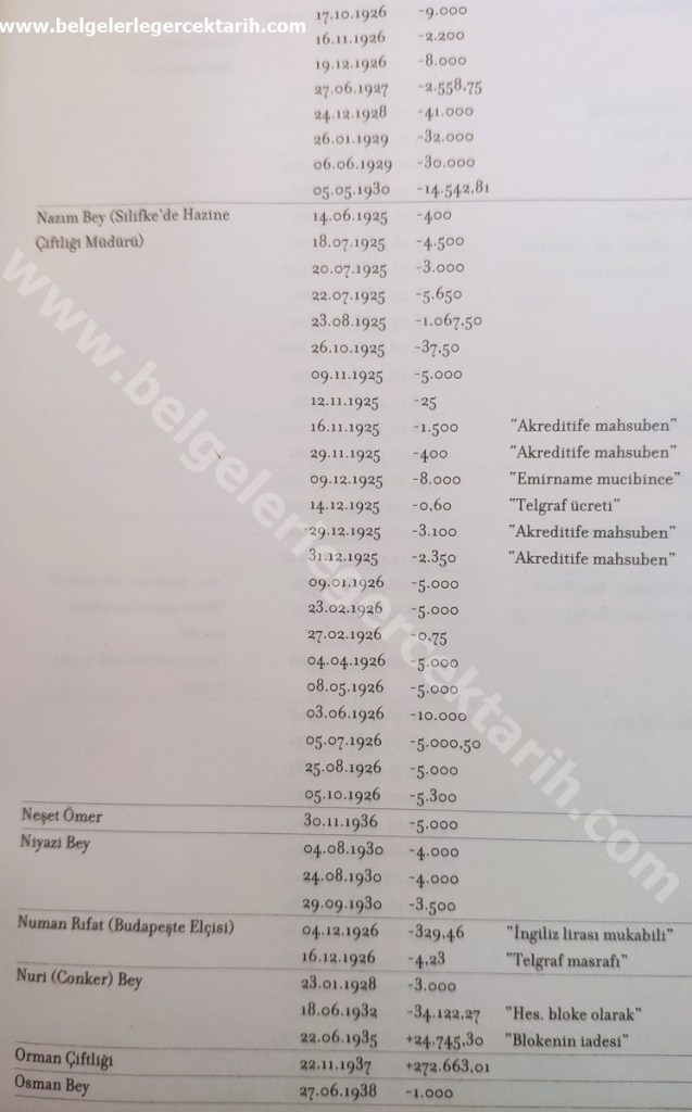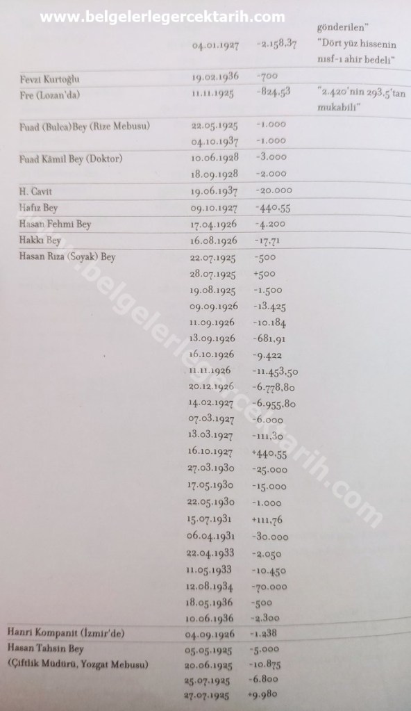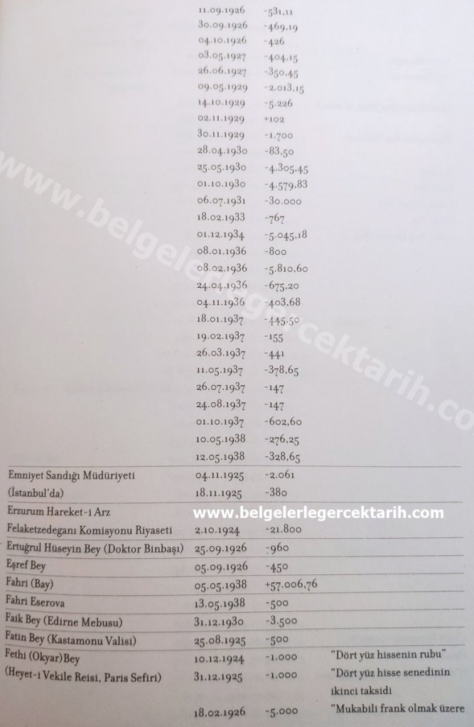 M. Kemal’in hesaplarından Ismet Inönü’ye yapılan ödemeler bununla sınırlı değildi.