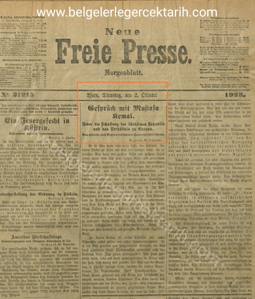[1] no’lu dipnot ile alakalı… 28 Eylül 1923 tarihli Neue Freie Presse gazetesinde neşredilen makale ve haber…
