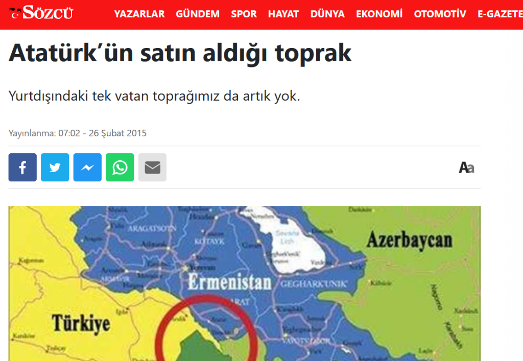 Kemalizmin sözcüsü mevkiinde bulunan “Sözcü” gazetesi yine yalanın dibini bulmuş. Daha evvel de bazı yalanlarını ifşa ettiğimiz gazete, bu sefer de kemalist Türkiye’nin Iran’dan toprak satın aldığını iftiharla sütunlarına taşımış. Hızını alamayan Sözcü, söz konusu toprak parçası için M. Kemal’in kendi cebinden ödeme yaptığını yazmış… Sanki mahalle manavı Hamdi abiden bir poşet muz alıyor. Aslında bu uydurmasyona cevap vermek vakit israfıdır, fakat bu gazeteyi hala ciddiye alıp okuyan bir kitle olduğunu da hesaba katmamız lazım. Buna rağmen “M. Kemal devletten aldığı maaşla bu parayı nasıl ödedi” gibi beyin yakıcı sualler sorup meseleyi mantıki yolla halle kalkışmayacağız. Zira adı geçen gazetenin okur kitlesinin büyük bir kısmı mantıkla alış-verişi kesmiş vaziyettedir.