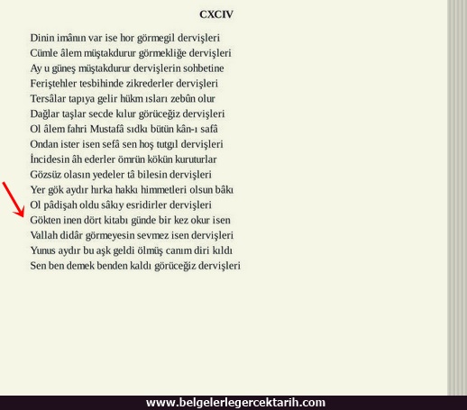 [14] no’lu dipnotta bahsi edilen Yunus Emre’ye ait beyitin yer aldığı sayfa…