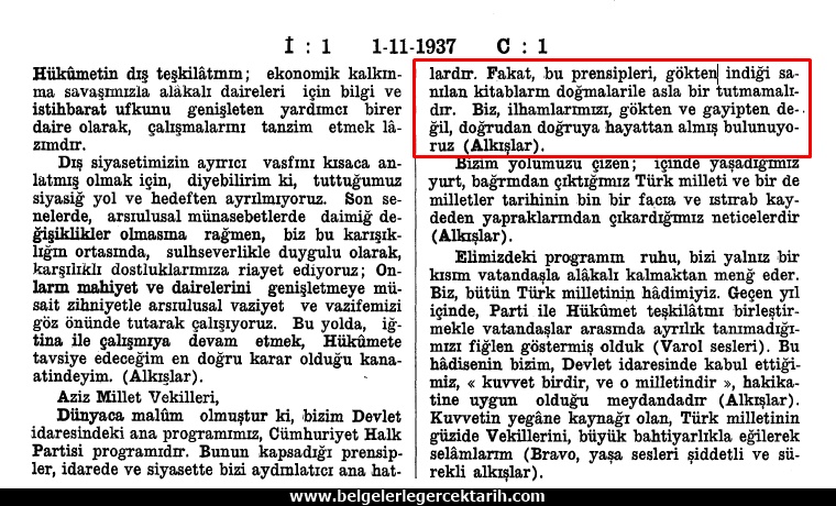 Esasen M. Kemal’in bu konuşmada ilahi kitapları kastettiğini kemalistlerin az çok “okumuş” kesimi biliyor, fakat yalan yanlış teviller yapmak suretiyle müslüman aile ortamında doğup büyümüş ve Islami hassasiyetlere sahip olmakla birlikte dini ve tarihi malumatı zayıf insanları aldatmaya ve böylelikle de bu batıl rejimi ayakta tutmaya çalışıyorlar. Işte bizim bütün gaye ve gayretimiz gerçekleri olduğu gibi ortaya koyup insanların aldatılmasına mani olmaktır.
