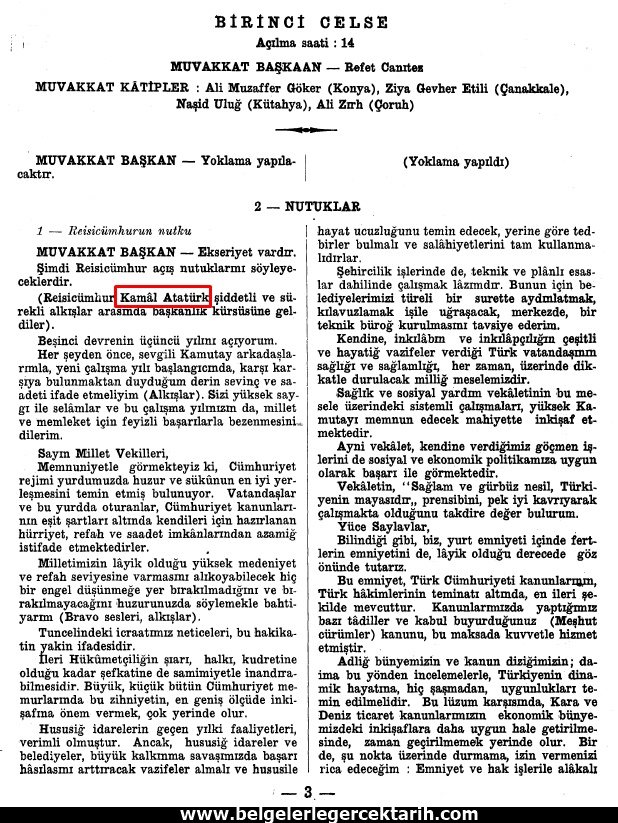[1] TBMM Zabıt Ceridesi, Devre 5, Cild 20, Içtima 1, 1 Kasım 1937, sayfa 9.