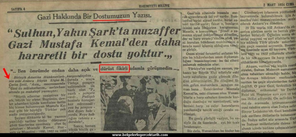 [9] “Atatürk’le ABD’li elçinin gizli kalmış din sohbeti”, Milliyet Gazetesi, 7 Eylül 2006.