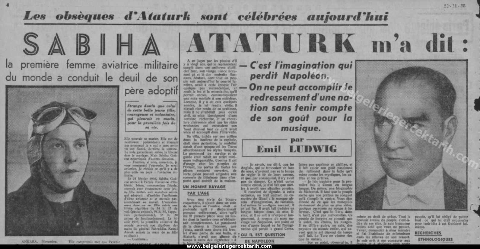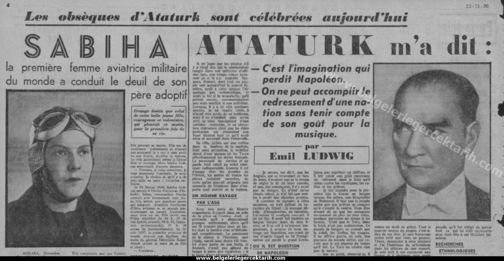 M. Kemal’in 10 Kasım 1938’de ölmesi üzerine Fransa’da çıkan “Paris-Soir” gazetesi, 22 Kasım 1938 günü yani Emil Ludwig ile yapıldıktan 8 sene sonra bu mülakatı hülasa ederek vermiş. Mesela alman gazetesinde yer alan Kur’an-ı Kerim hakkındaki “neredeyse tamamında aşağı yukarı aynı şeyler yazdığı“na dair kısım çıkarılmış: