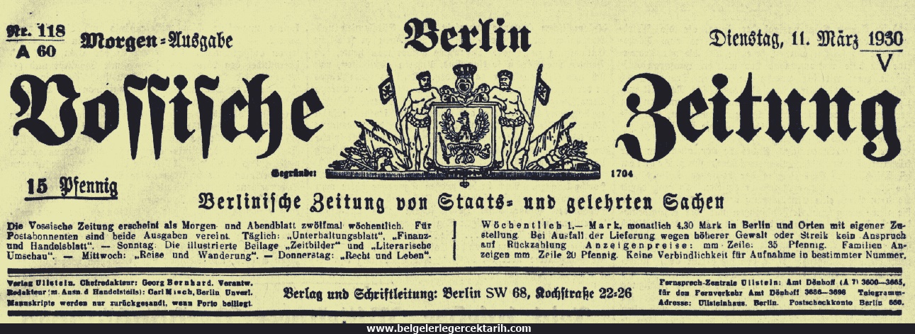 [14] “Vossische Zeitung” Gazetesi, 9 ve 11 Mart 1930. Yazıda yer verilen sözler 11 Mart gününe ait nüshadan alınmıştır.