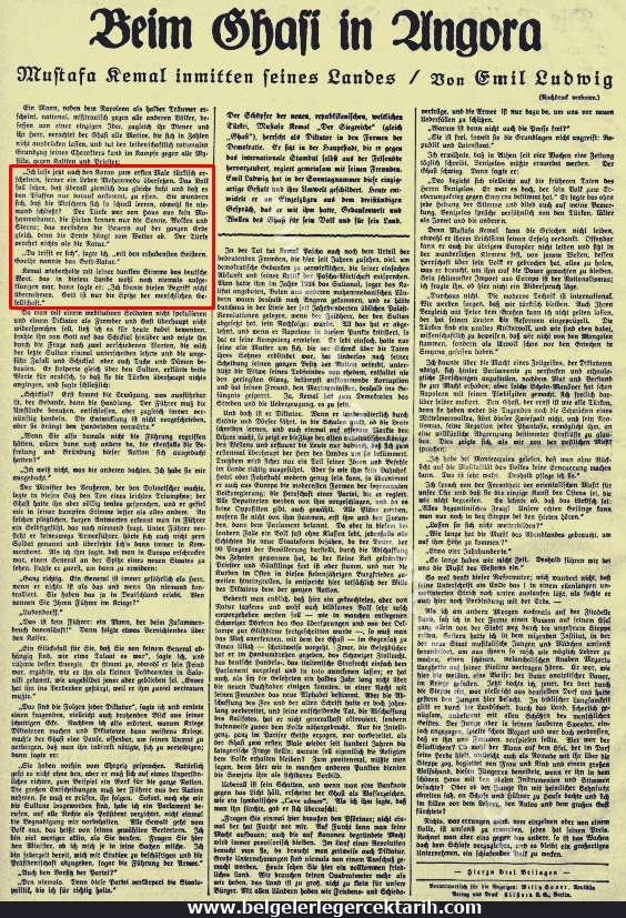 [15] no’lu dipnotta bahsi geçen 1 Aralık 1929 tarihli Hakimiyet-i Milliye gazetesi; “Gazi Hz. Dün Emil Ludwig’i Kabul Etti…”