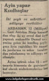 Mesela 1932 senesine ait “Milliyet” gazetesinin bir haberinde, “Ayin yapan Kızılbaşlar” başlığı altında şu ifadeler yer almaktaydı: