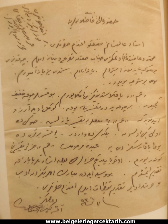 [25] no’lu dipnot ile ilgili mektup…