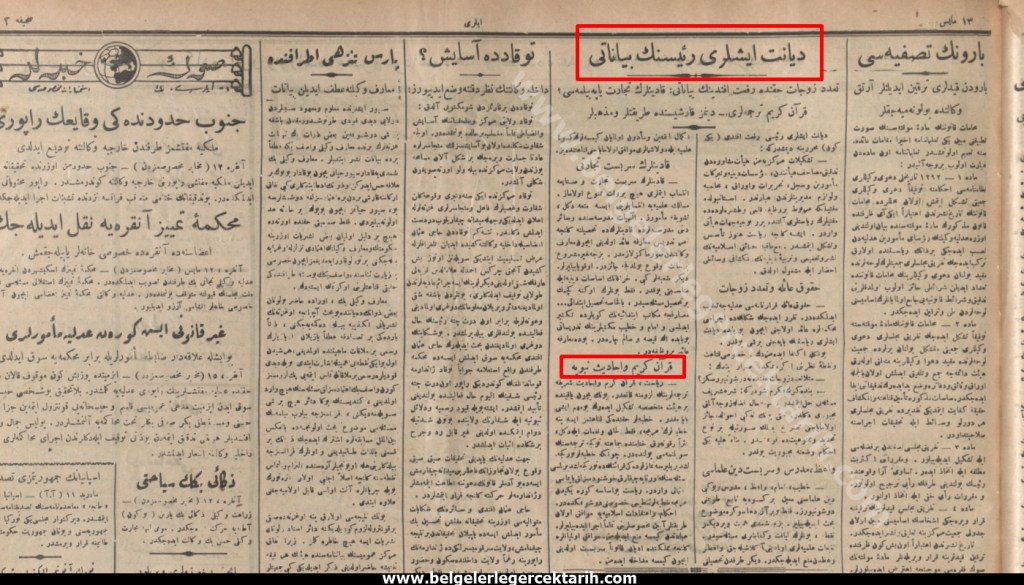 [12] Diyanet Işleri Reisi’nin Beyanatı, Ileri Gazetesi, 13 Mayıs 1924.