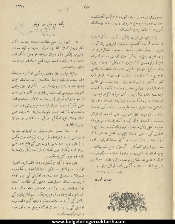 [19] no’lu dipnotta bahsi edilen ve Ahmed Hamdi Akseki’nin el yazısını havi belge…