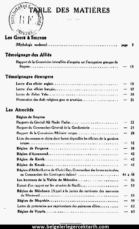 Dr. Nihat Reşat’ın [4] no’lu dipnotta sözü edilen Fransızca eserinin kapağı ve “Içindekiler” kısmı…