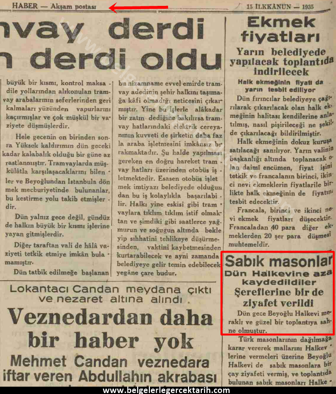 “Sabık (eski) masonlar Dün Halkevine aza kaydedildiler. Şereflerine bir de ziyafet verildi” başlıklı haber şöyleydi:
