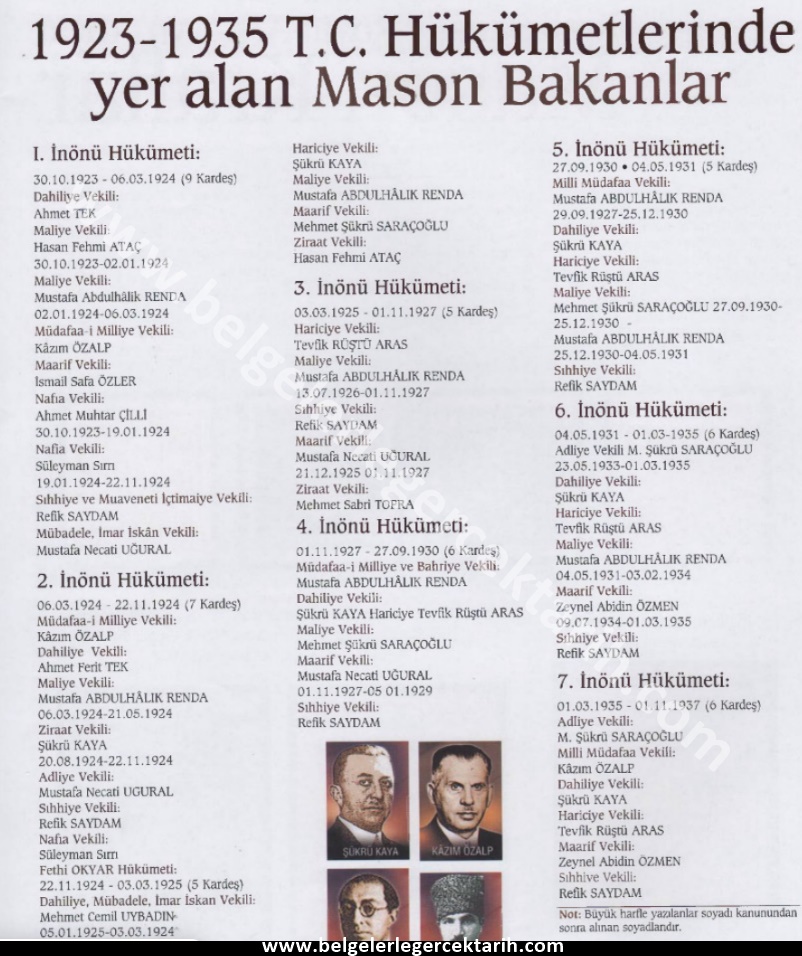 [8] no’lu dipnot ile ilgili… M. Kemal döneminde mason Bakanların listesi…